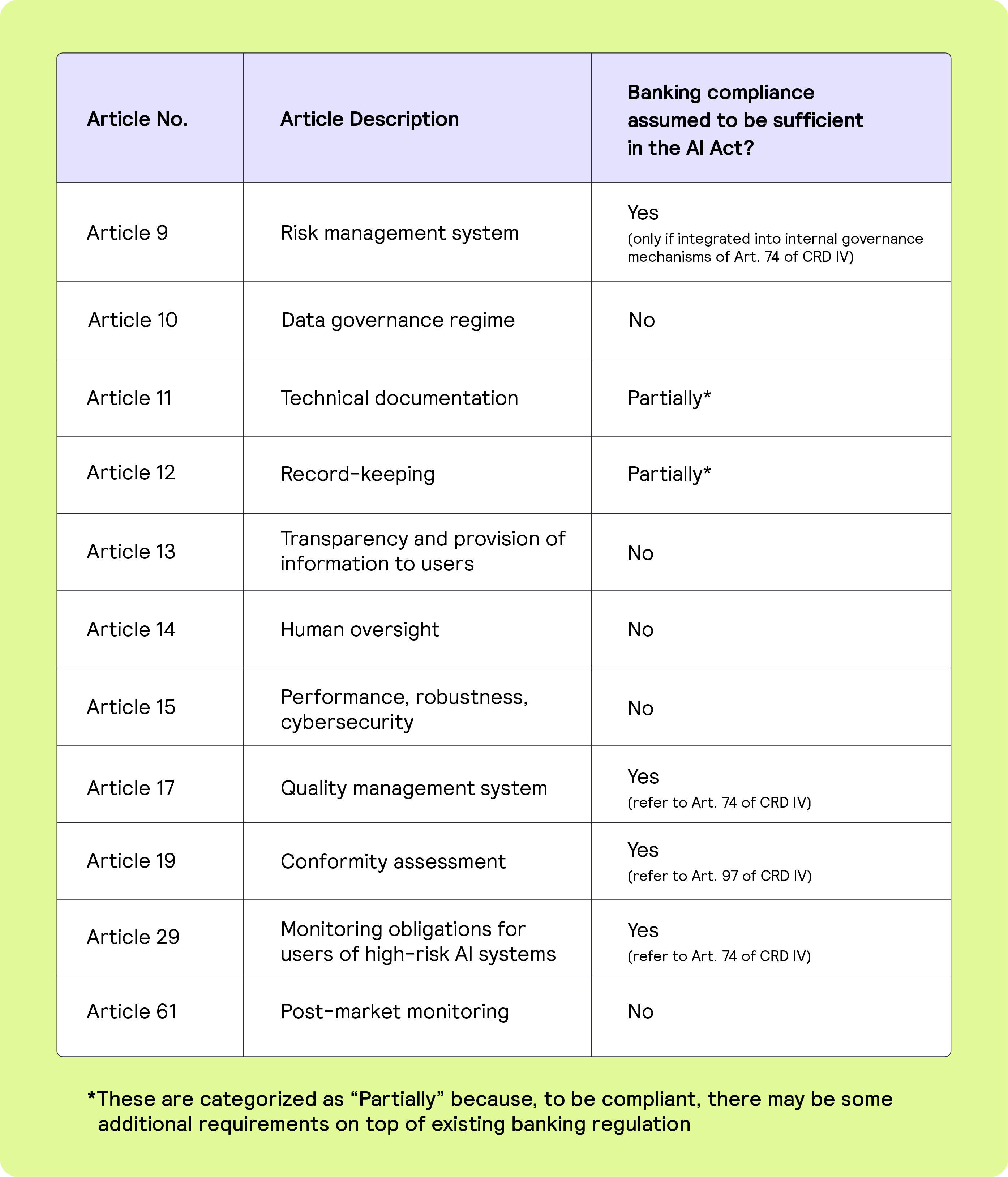 Although the AI Act often refers to existing banking regulations in various places, several additional articles and obligations are proposed.