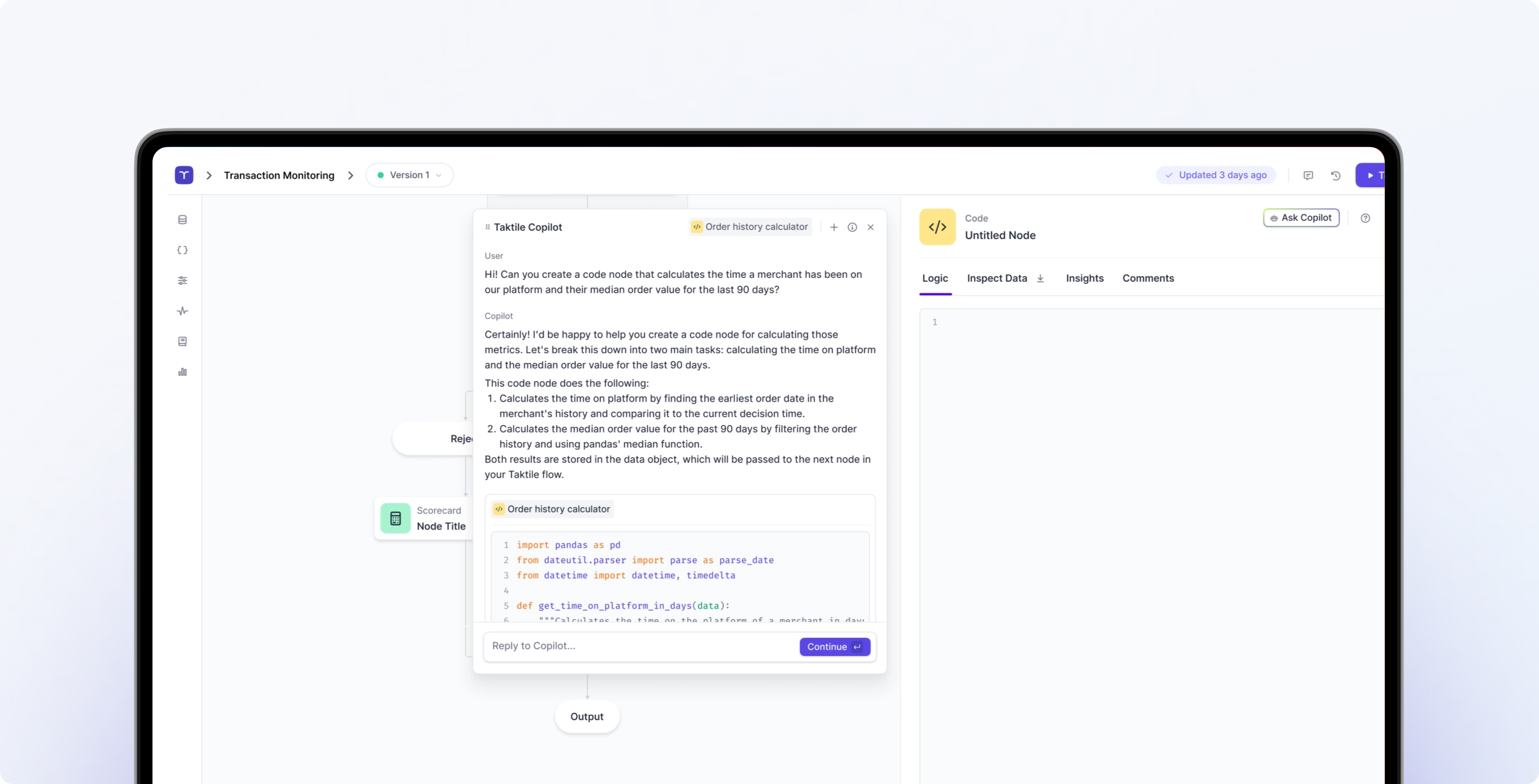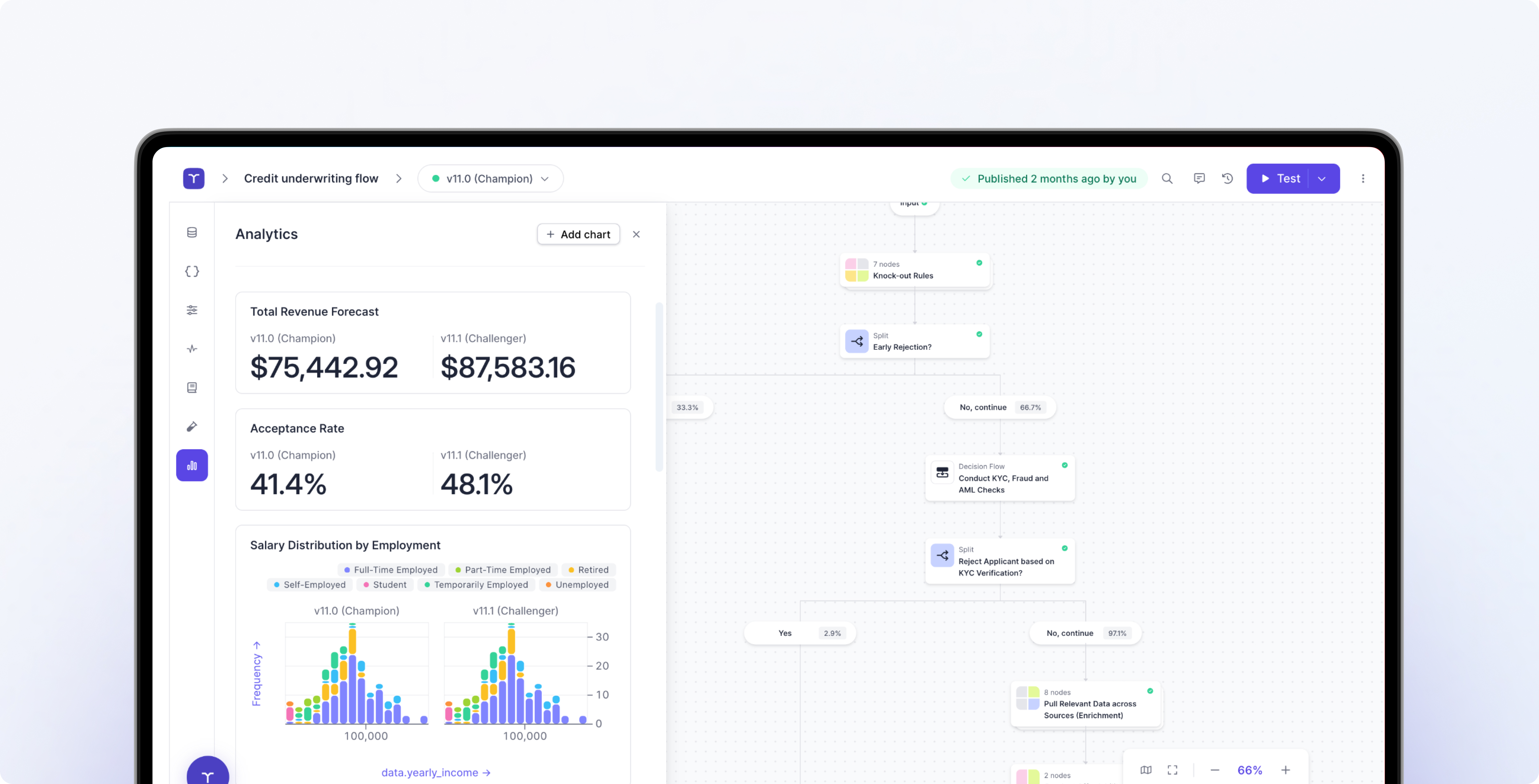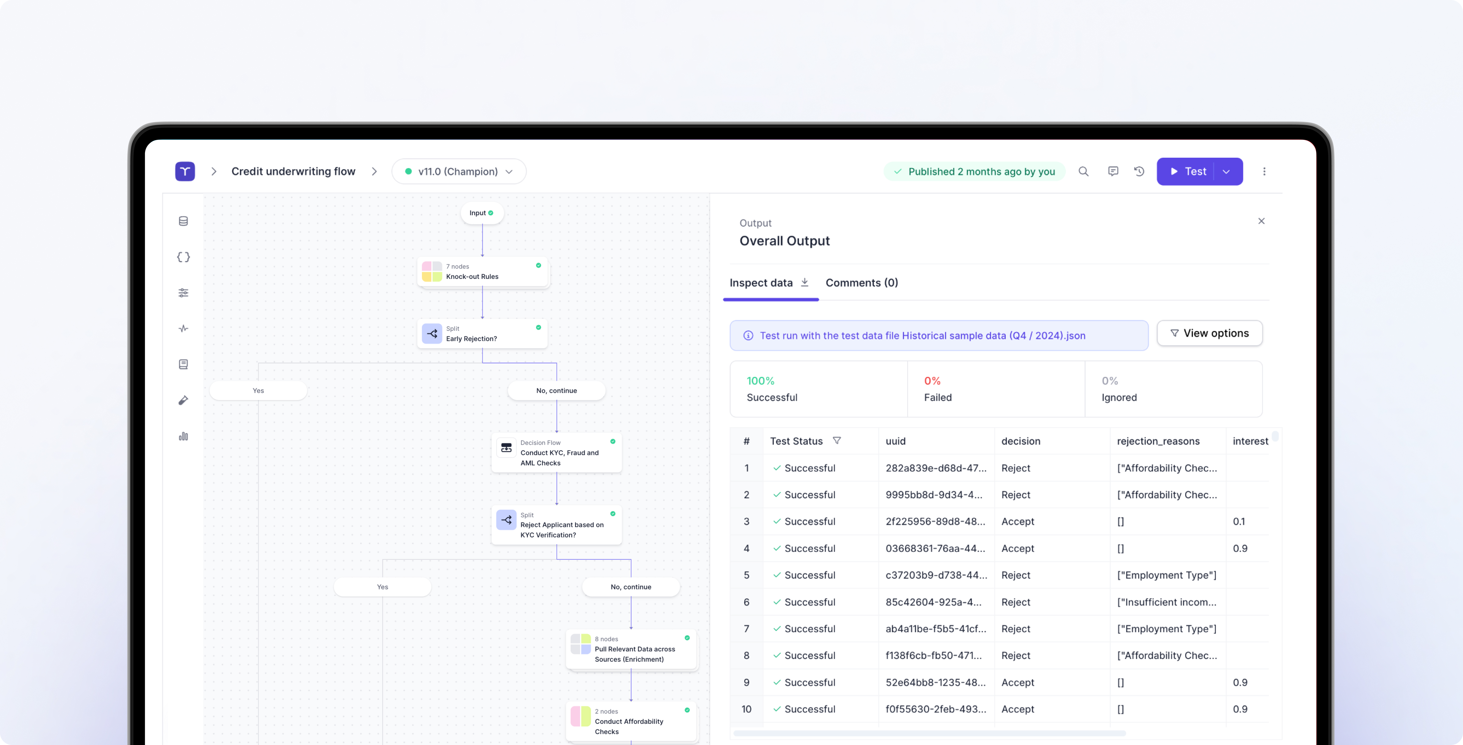 Build decision logic visually using pre-built 'nodes' that empower you to move fast without writing code.