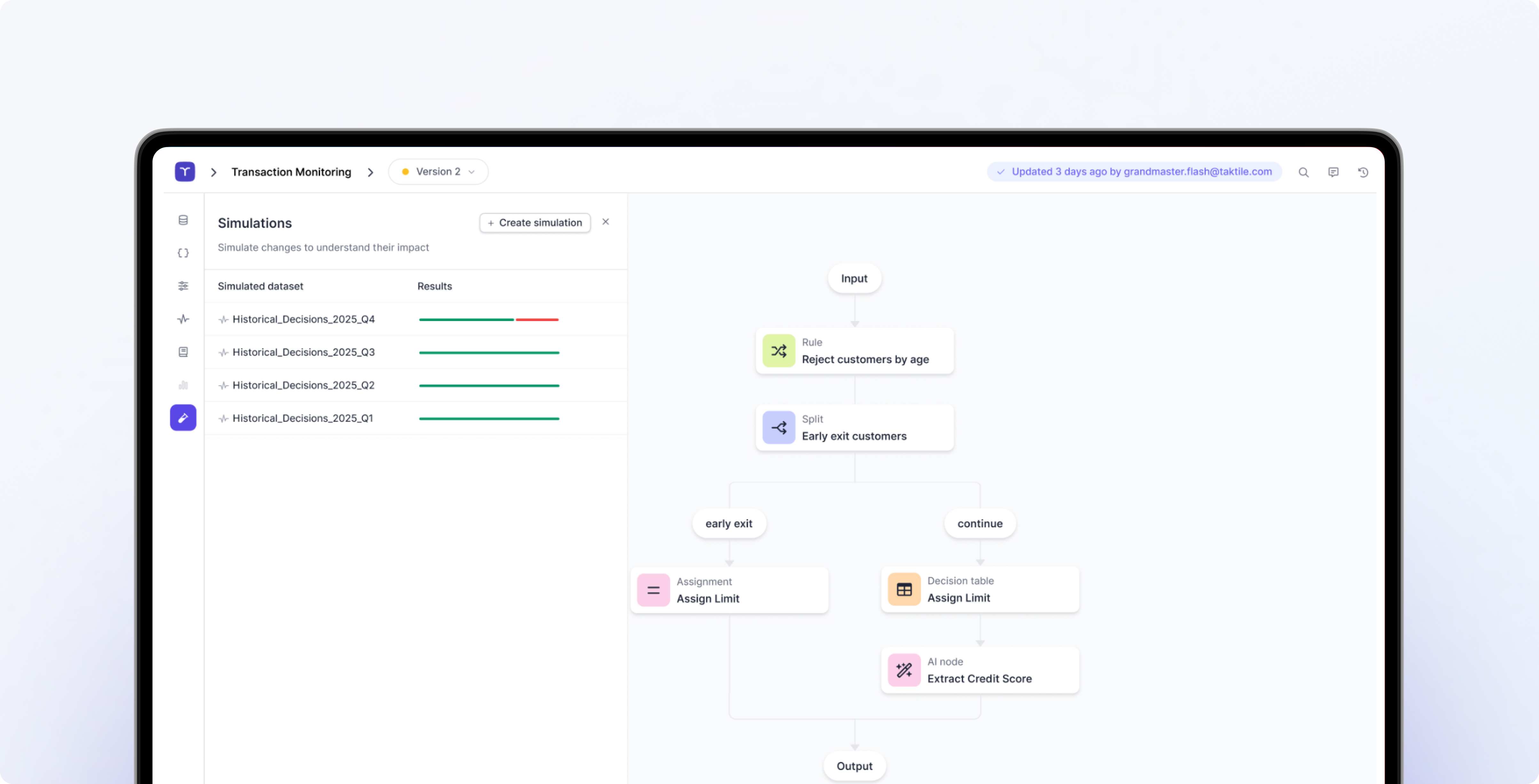 Unblock your domain experts to iterate quickly on business logic with the safety and control that financial institutions require.