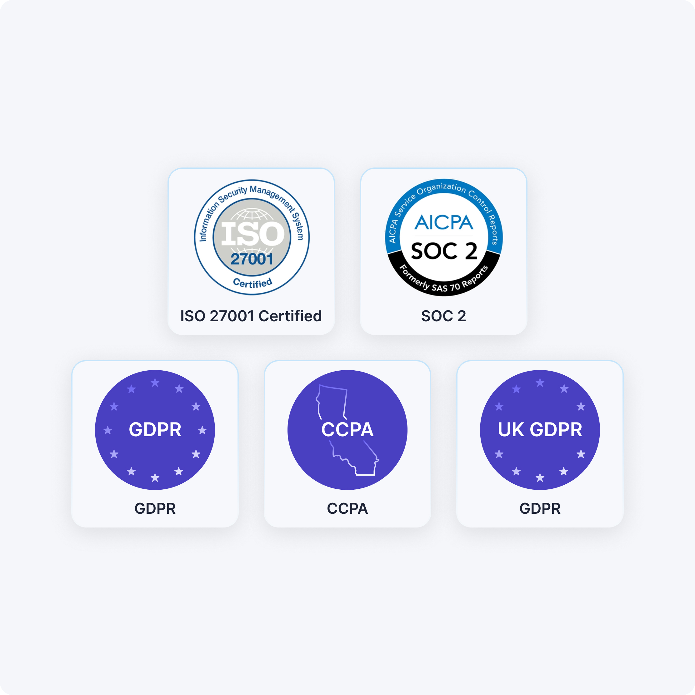 Third-party experts validate our security controls so you don't have to take our word for it. ISO 27001 and SOC 2 Type II certified with regular independent audits.