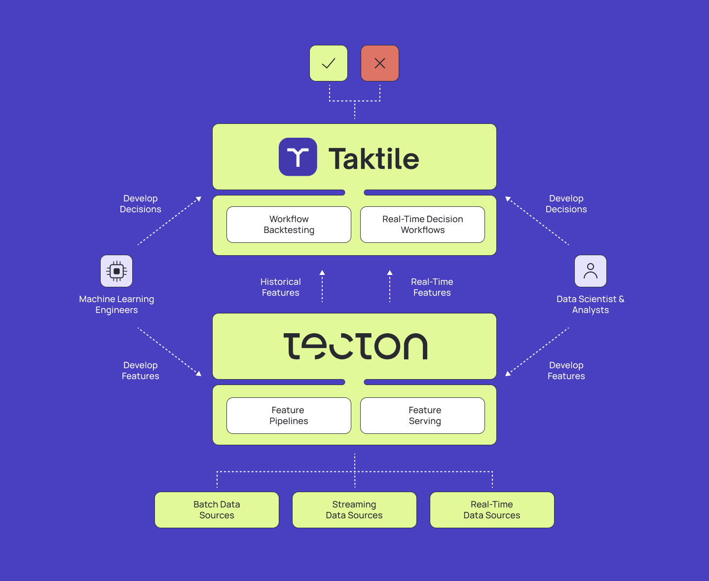 This is why Taktile and Tecton have teamed up to empower practitioners across financial services organizations to rapidly build and deploy real-time, accurate, and scalable risk decisions across every use case.