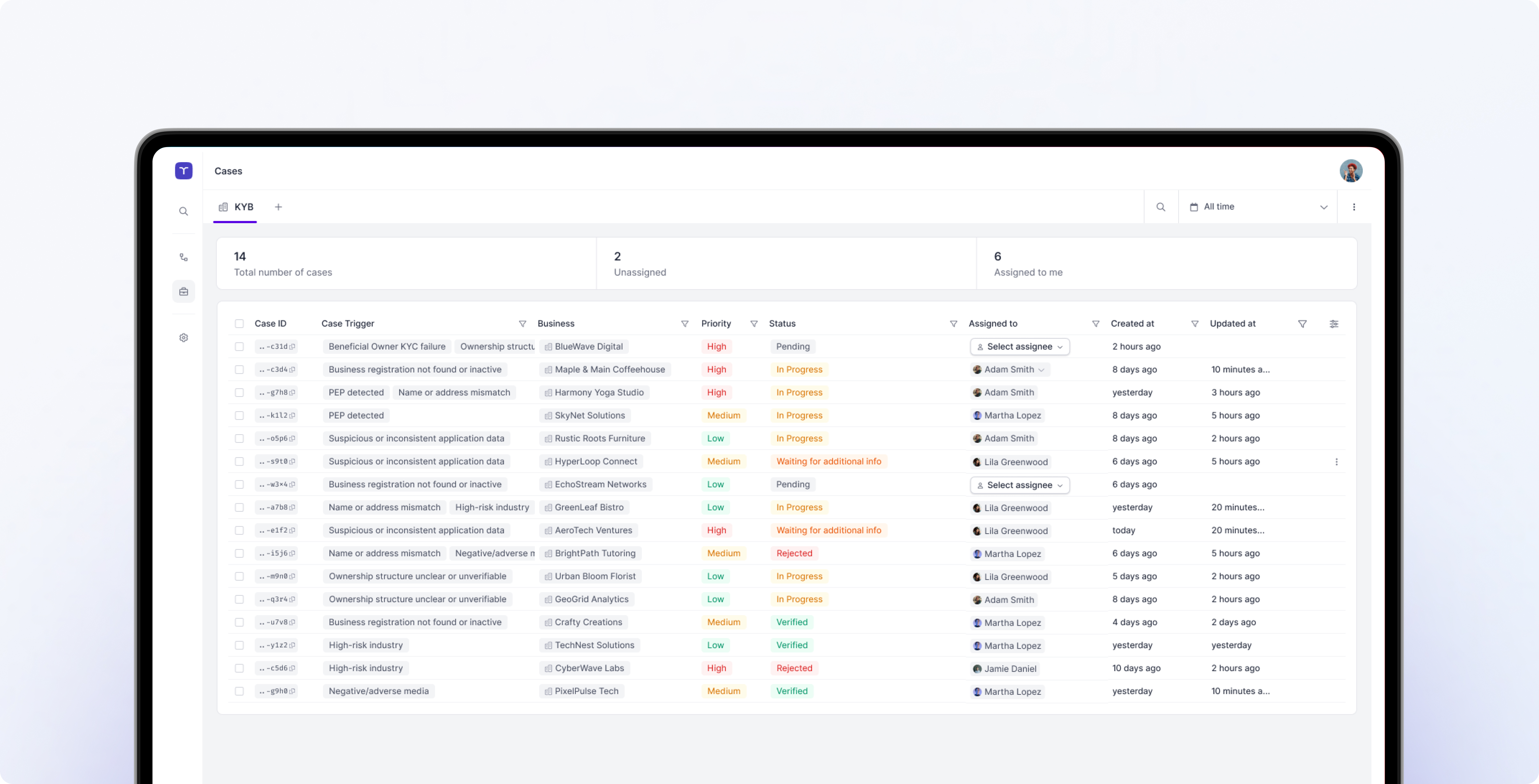 Use agentic AI to automate identity and business checks end-to-end — with human-in-the-loop controls that keep your teams fully in charge.